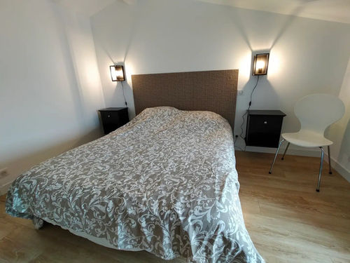 Plein pied : Salon et cuisine ouverte, 2 chambres avec lits doubles, salle d'eau, WC indépendant - Canapé-lit d'appoint dans le salon.