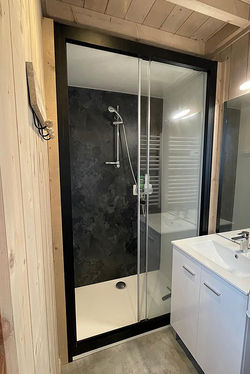 Étage : Chambre avec lit double - Salle de bain avec douche et WC